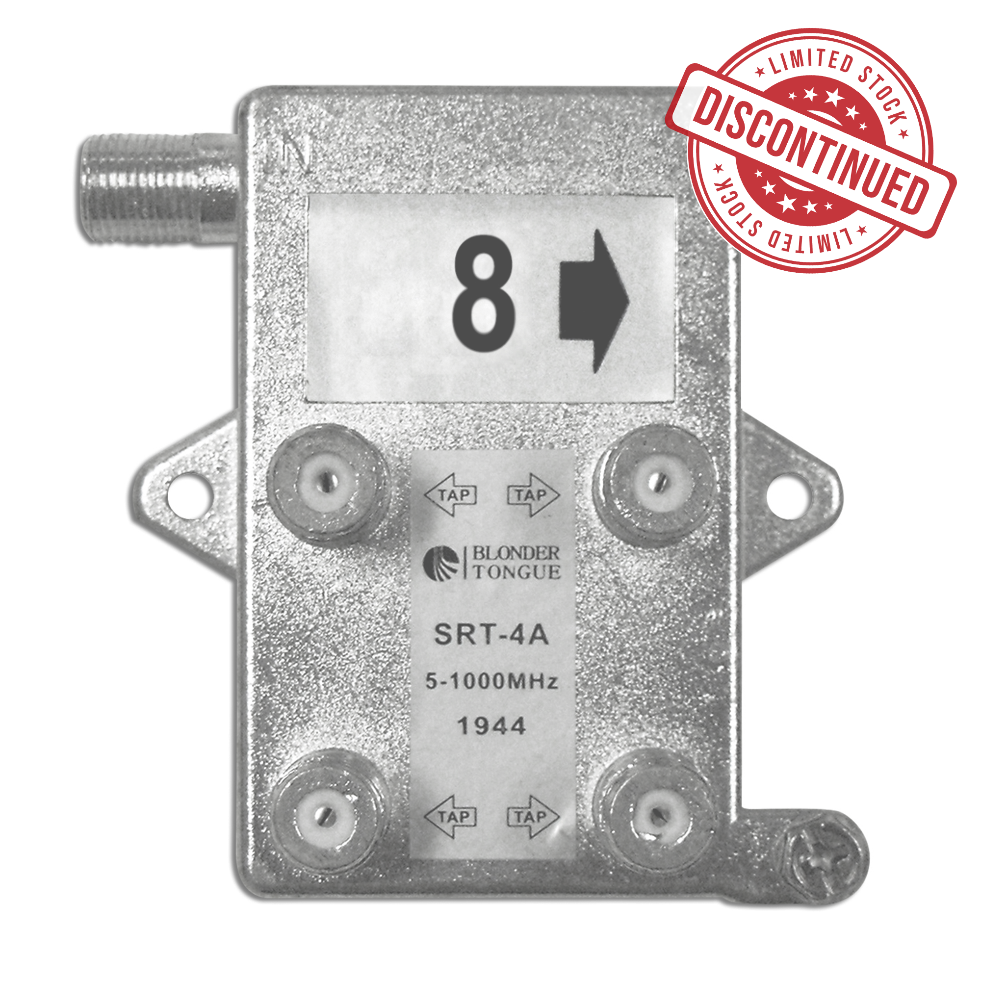 The Blonder Tongue SRT Series of indoor 1 GHz taps are the standard for directional couplers used in broadband systems, such as those in educational, correctional, commercial, and MDU’s. The SRT-4a is a 4-Output indoor directional tap with a range of 5-1000 MHz. It is formatted in a T Style and provides an RFI shielding of 120 dB.